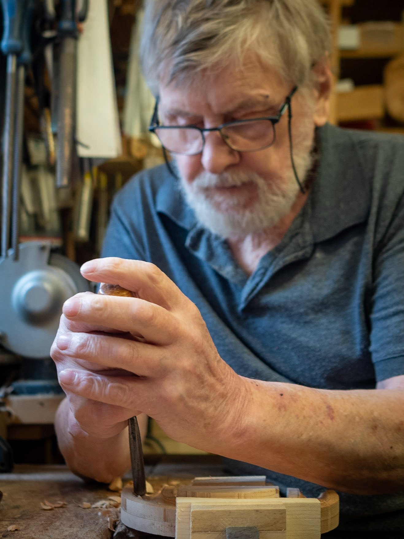 Auch Der Sonntag auf dem Fotogipfel war voll gepackt mit Fotografieren! Los ging es schon morgens mit dem Workshop zur Reportage-Fotografie, natürlich auch wieder mit Frank von der FF-Fotoschule. Zuerst besuchten wir einen Instrumentenbauer, der traditionelle Harmonikas herstellte. DANACH GING ES IN EINE HOLZSCHNITZEREI, WO DIE WERKSTATT UNS MIT EINER UNENDLICHEN MENGE AN KLEINEN DETAILS VERZAUBERTE.